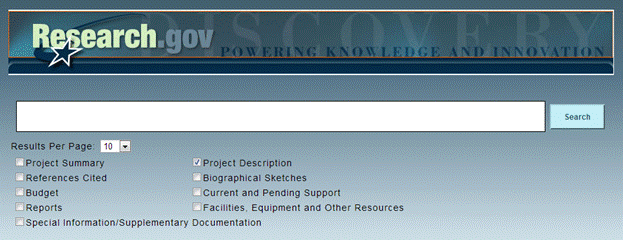 Beginning in May 2012, for complex search queries, NSF staff can easily identify (via check boxes) the proposal section(s) they wish to search. For example, rather than include Section_Title: Proposal_Description in a query string, users can simply check the box next to that section from the list.