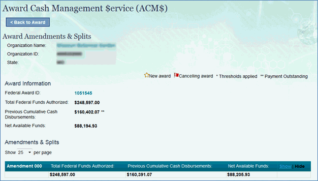 Award Cash Management Service (ACM$)