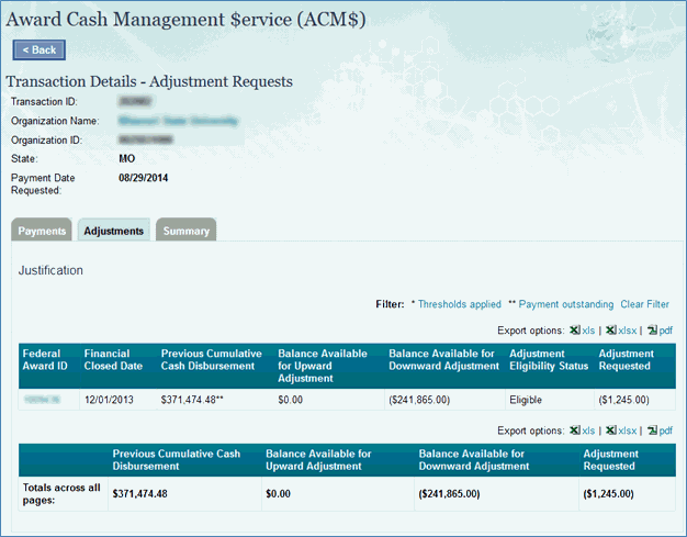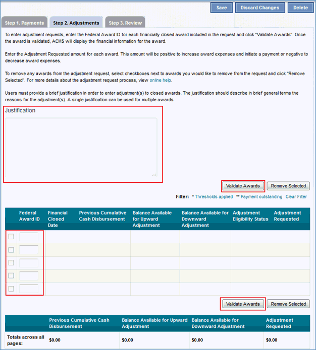 Note: You may enter adjustment requests for up to 5 awards at a time.