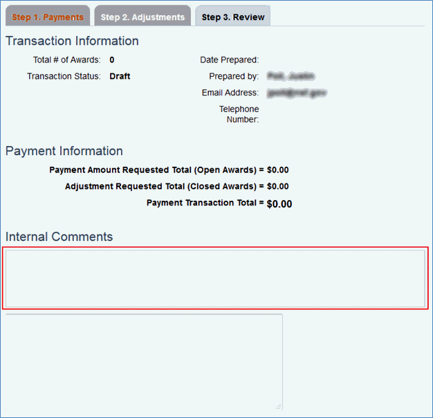 4. You can provide a comment on the transaction if desired. Comments will remain internal to NSF.