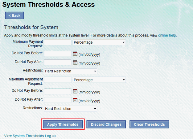 2. Enter the system threshold details and select “Apply Thresholds.”